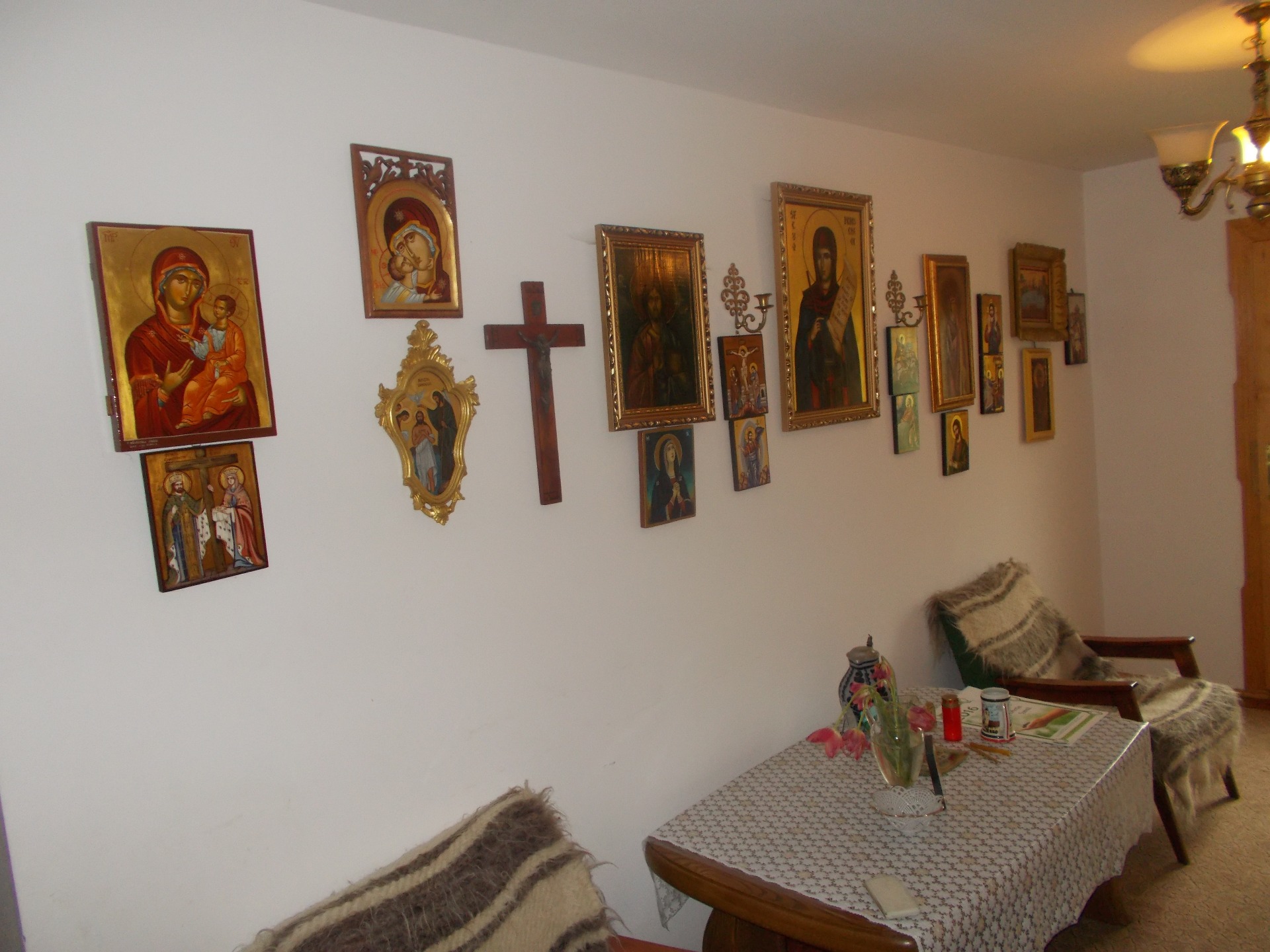 In holul pensiunii puteti admira 20 de icoane pictate pe lemn precum si tablouri